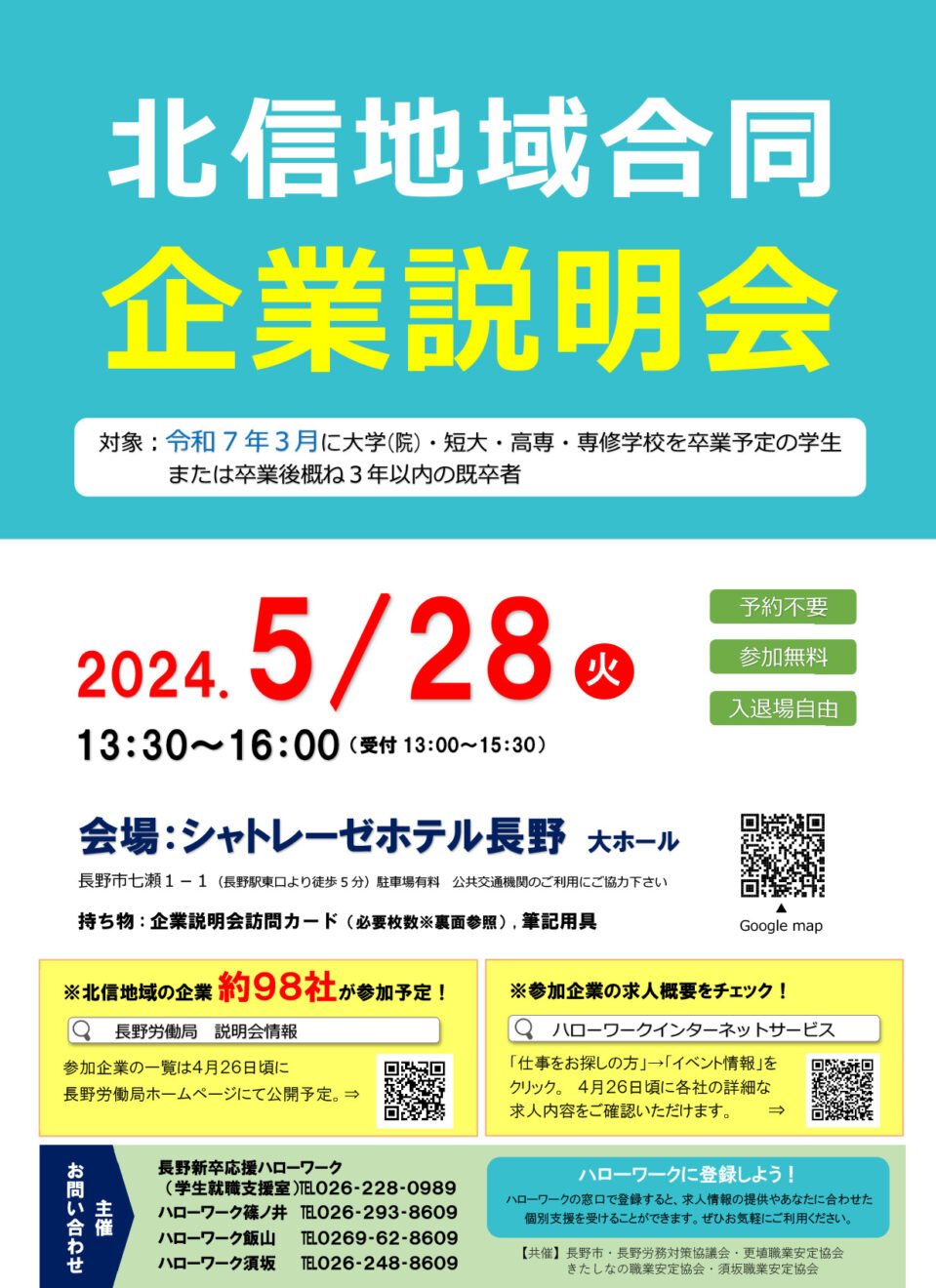 下記の日程にて開催予定の「長野県 北信地域合同企業説明会」に当社も参加いたします。